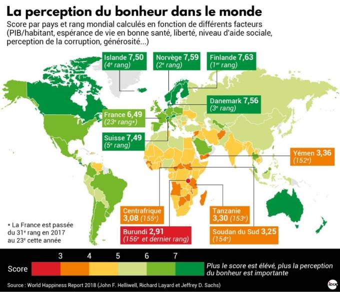 21- Identifiez le top 3 des pays où la perception du bonheur est importante
