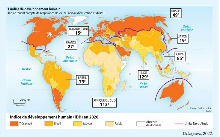 Travail à faire :Mr Lombard vous explique que le niveau de vie de certains habitants de ville du Val d'oise est bien inférieure à la moyenne nationale. Néanmoins, les habitants sont heureux et certaines agglomérations attirent toujours plus de monde.A partir des documents 6 et 7 :15- Expliquez en quoi le PIB ne permet pas de mesurer la croissance de manière préciseA partir du document 6 :16- Expliquez la phrase soulignée dans le document 617- Listez les nouveaux critères pris en compte pour mieux déterminer la croissance18- Listez les 3 principales conséquences de l'extraction massive des ressourcesA partir du document 8 :19- Listez les éléments qui permettent de calculer l'IDH et préciser l'intérêt d'utiliser cet indiceA partir du document 9 :20- Identifiez pour les pays suivants, le niveau d'IDH correspondant (de niveau bas à très élevé)