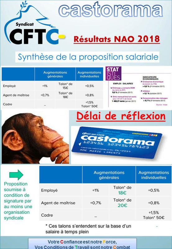 La Négociation Annuelle Obligatoire vient de se terminer. Voici la proposition patronale soumis à signature : La CFTC n'a pas signé cet accord sur les salaires. En effet, la section estime que le 1% octroyé est en décalage avec l'augmentation du SMIC...