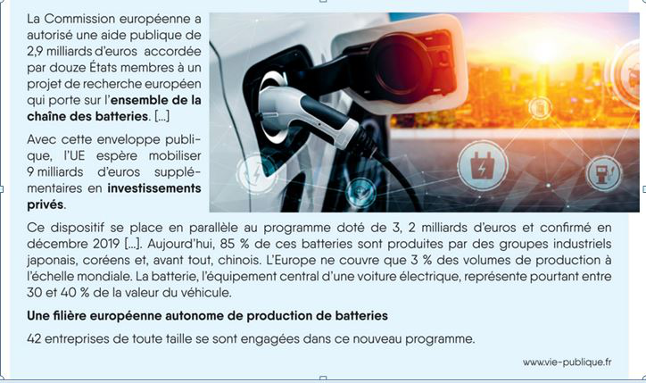 Document 3 : Véhicules électriques, quels projets européens pour la production de batteries ?