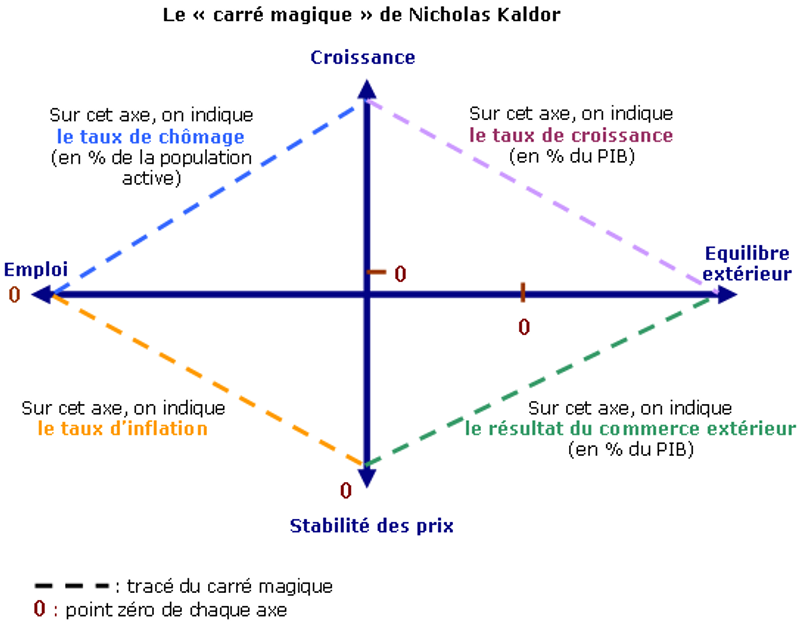 Travail à faire :A partir des documents 5 et 6 :6- Retrouvez les 4 principaux objectifs poursuivis par une politique économique7- Sur le schéma, tracez le « carré magique » représentant une situation économique idéale.